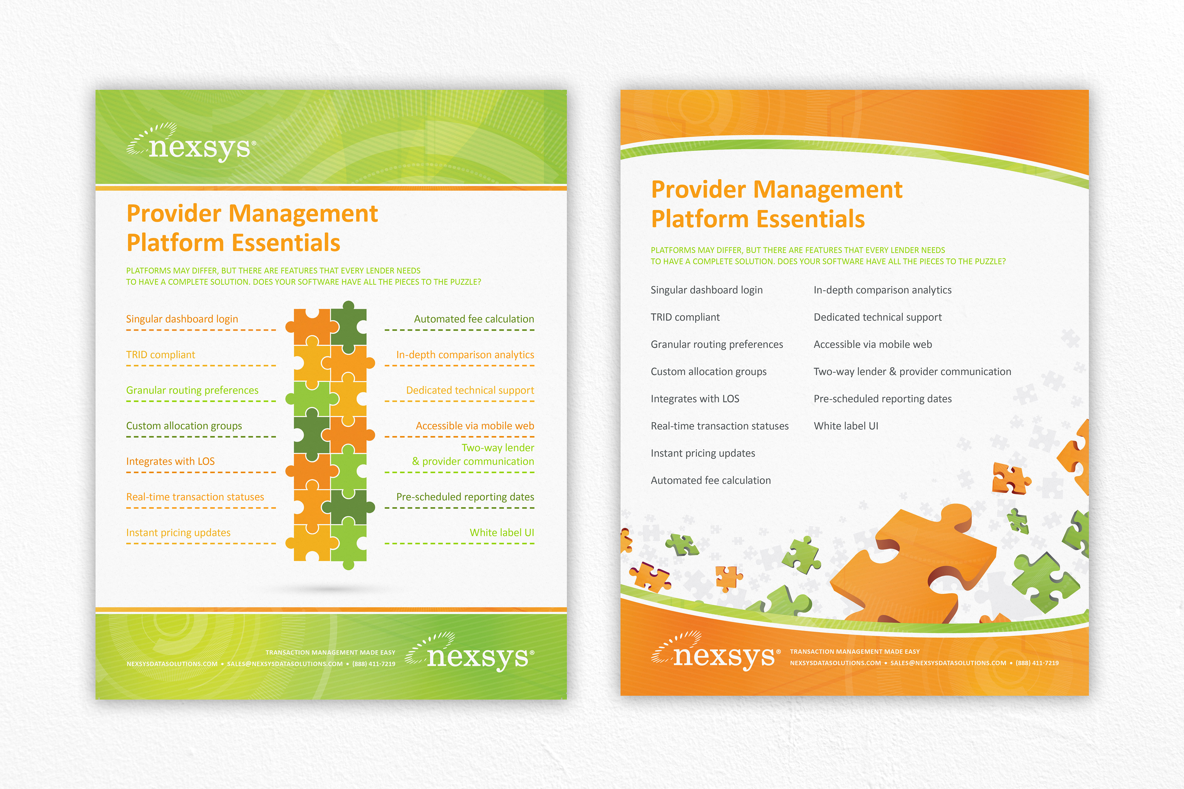 Nexsys ad | Team Member illustration for animation video | Nexsys one-pagers | TMX logo |